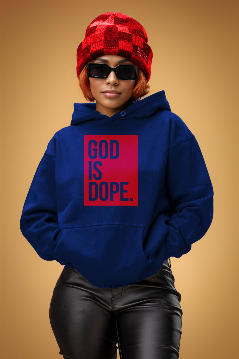 Perfect for holiday photos, campus events, winter fits, or everyday wear, each hoodie stands out with our iconic GOD IS DOPE. print—reminding the world of faith, culture, and identity every time you step out.